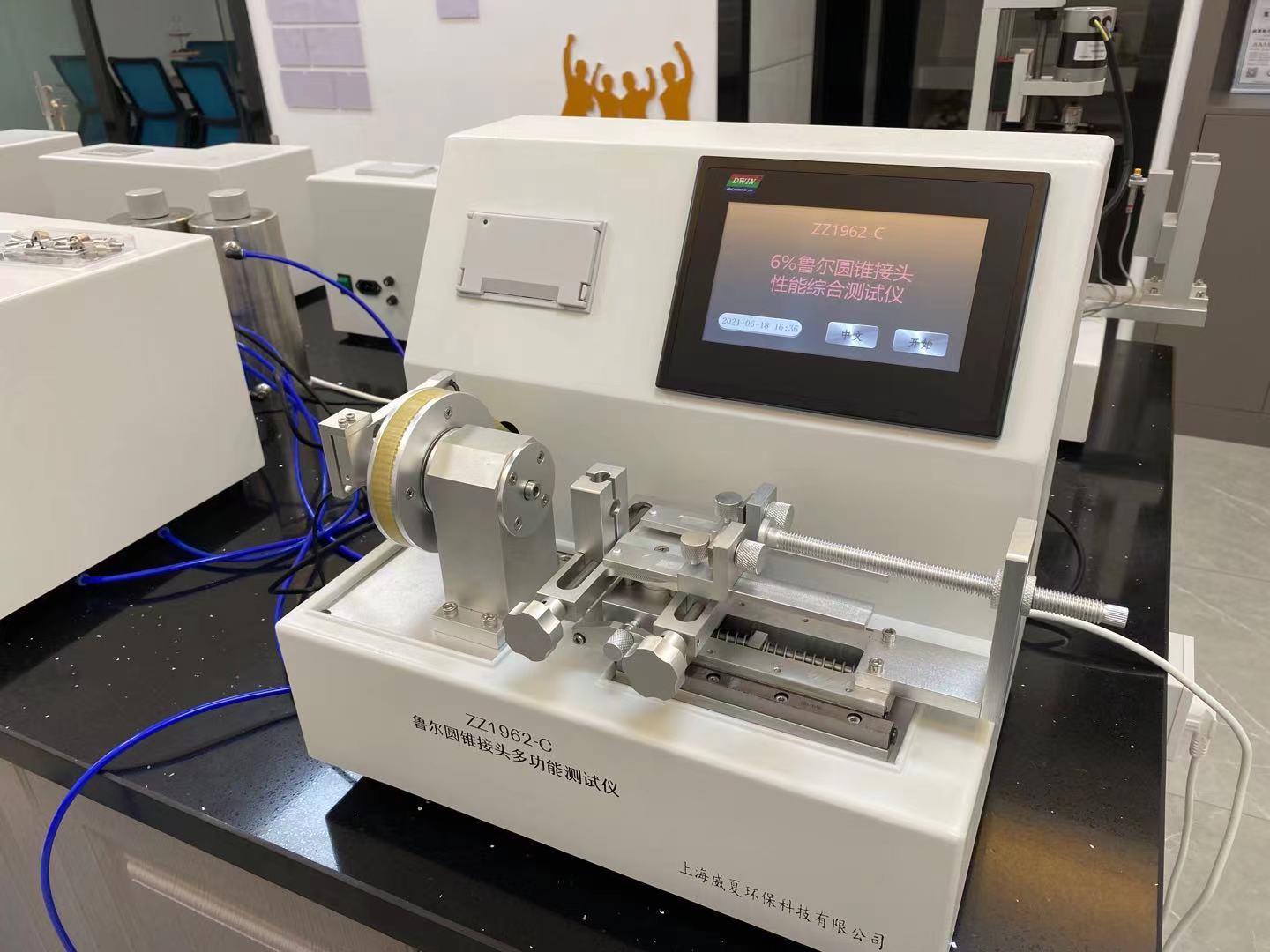 使測(cè)試結(jié)果更加規(guī)范化標(biāo)準(zhǔn)化。信息安全方面采用三級(jí)密碼,讓信息安全可靠。測(cè)試操控范圍包括:測(cè)試項(xiàng)目、公稱規(guī)格、產(chǎn)品名稱、打印設(shè)定、測(cè)試、上行、下行、時(shí)間、標(biāo)定,檢定等功能設(shè)定。搭配機(jī)載打印測(cè)試可實(shí)時(shí)顯示測(cè)試數(shù)據(jù),。針對(duì)測(cè)試結(jié)果自動(dòng)判斷,不合格則啟動(dòng)自動(dòng)蜂鳴報(bào)警,并由打印機(jī)打印出測(cè)試數(shù)據(jù)及結(jié)果以供分析。在測(cè)試過(guò)程中顯示裝配施加的軸向力、扭矩、保持時(shí)間、內(nèi)部水壓、可測(cè)試魯爾接頭的漏液、漏氣、分離力、旋開(kāi)扭矩、易裝配性、抗滑絲性、應(yīng)力開(kāi)裂、壓力衰減泄漏、正壓液體泄漏、負(fù)壓空氣泄漏等各項(xiàng)性能,并在測(cè)試過(guò)程中顯示裝配施加的軸向力、扭矩,保持時(shí)間、內(nèi)部水壓、分離力、泄漏率值,包括各種6:100(魯爾)接頭,(鎖定和非鎖定),如輸液器、輸血器、輸液針、導(dǎo)管、麻醉過(guò)濾器等。